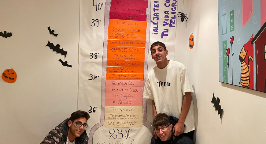 Hoy 25 de noviembre, Interprode se une a las instituciones y a toda sociedad civil para alzar la voz, clara y rotundamente, contra la violencia hacia las mujeres. Más allá de la inasumible cifra de víctimas que soportamos cada año en nuestro país, acabar con la violencia estructural que las mujeres sufren en cualquiera de sus manifestaciones sigue siendo una de los principales retos que tenemos como sociedad. Por eso, los diferentes recursos asistenciales de la entidad, de manera trasversal y durante todo el año, trabajan para concienciar a los/as menores que acogen en generar dinámicas formativas que favorezcan la igualdad, prevenga la violencia de género y neutralice los efectos de una cultura androcéntrica y machista. Todo ayuda, charlas con expertos, dinámicas de roley-play, visionado y debate de documentales y películas alusivas, elaboración de murales, asistencia a eventos y manifestaciones propias de esta efeméride con una gran participación por parte de los/as menores de todos los centros, tanto los especializados en Problemas de Conducta (“La Casa”, “Los Olivares” y "Las Nieves"), el Recep de “Los Prados”, como los ISL “Valle del Almanzora” y “Cármenes de Purchena” (también COILS cofinanciado con Fondo Social Europeo).
