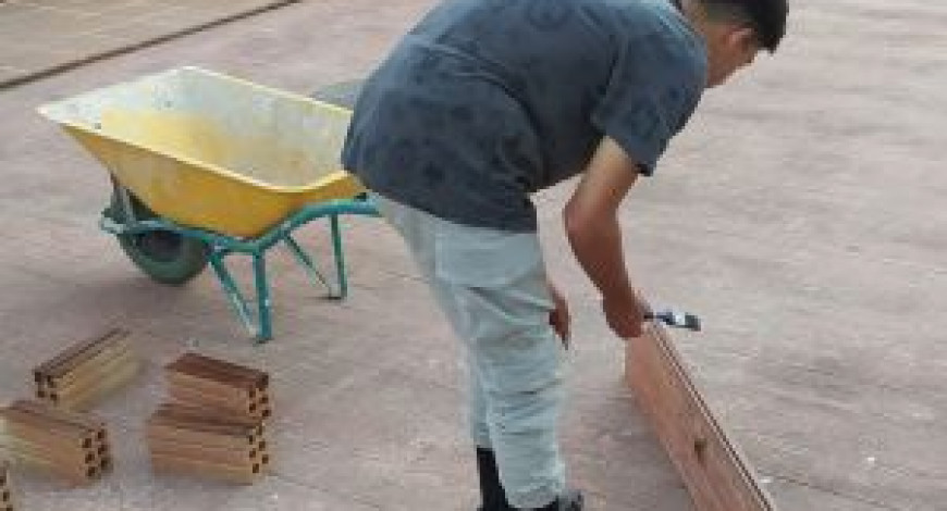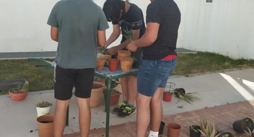 Como una actividad ludico formativa más, uno de los psicólogos del centro propuso rehabiliar una pequeña galería interior de la zona de oficinas. Con materiales reciclados de otras reformas, un poco de pintura y unas cuantas plantas, se ha quedado un curioso ricón vegetal en el que los menores participaron con vivo interés mostrándose muy satifechos con el resultado.