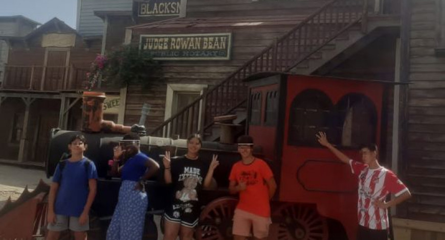 Menores del Centro de Protección con Programa de Problemas de Conducta “La Casa”, han realizado un divertido viaje a uno de los reclamos turísticos más autóctonos y singulares nuestra provincia. Siendo como es, desde mediados del siglo pasado, Almería tierra de cine, los/as menores de este recurso de INTERPRODE afincado en Purchena, visitaron unos de los decorados cinematográficos que aún siguen en pie desde esa gloriosa época. En concreto el Oasis-Mini Hollywood, un parque temático donde pudieron visitar los decorados de míticas películas de western, la reserva zoológica de especies desérticas y una actuación en directo de indios y forajidos, con los que tuvieron la oportunidad de hacerse fotos de recuerdo y disfrutaron de lo lindo.